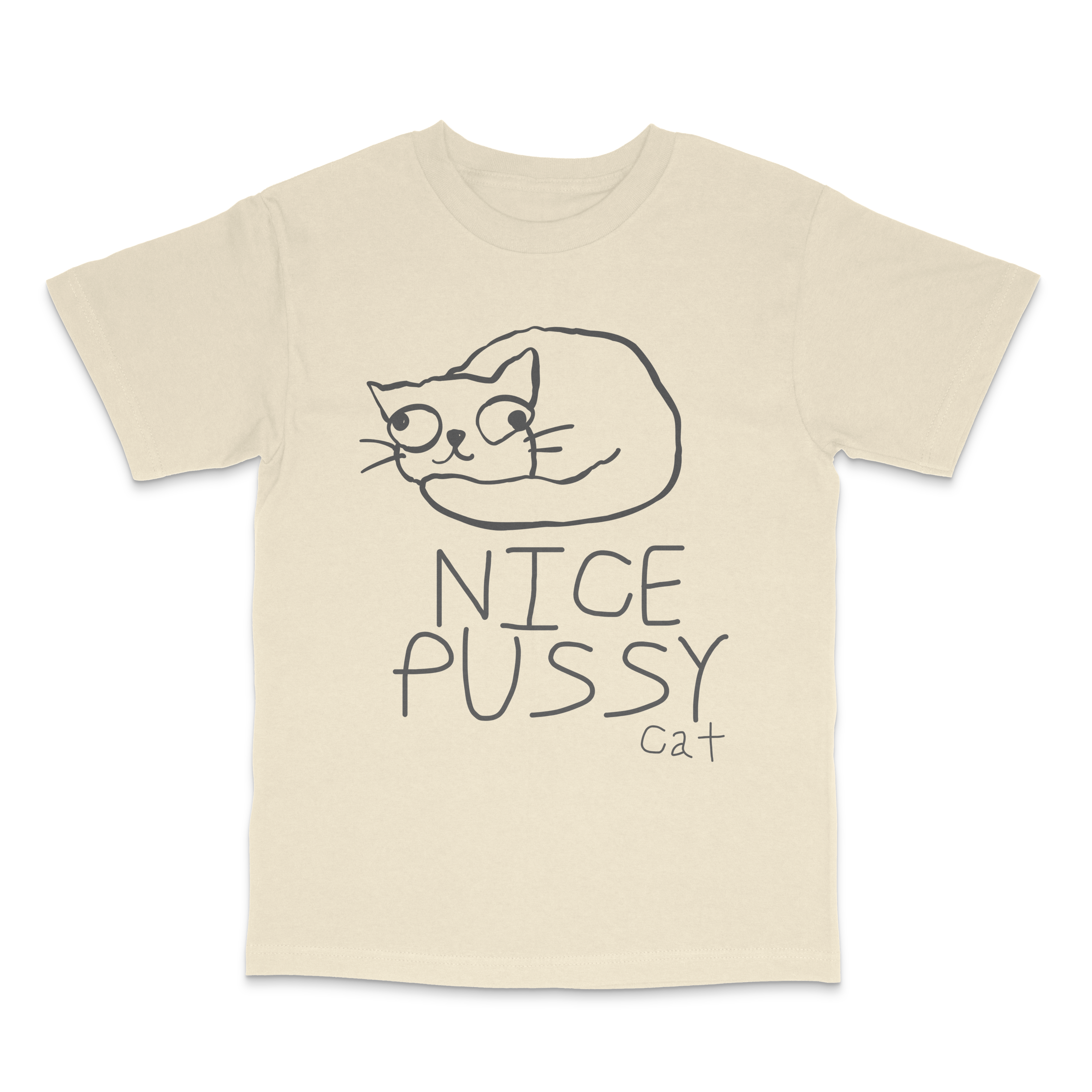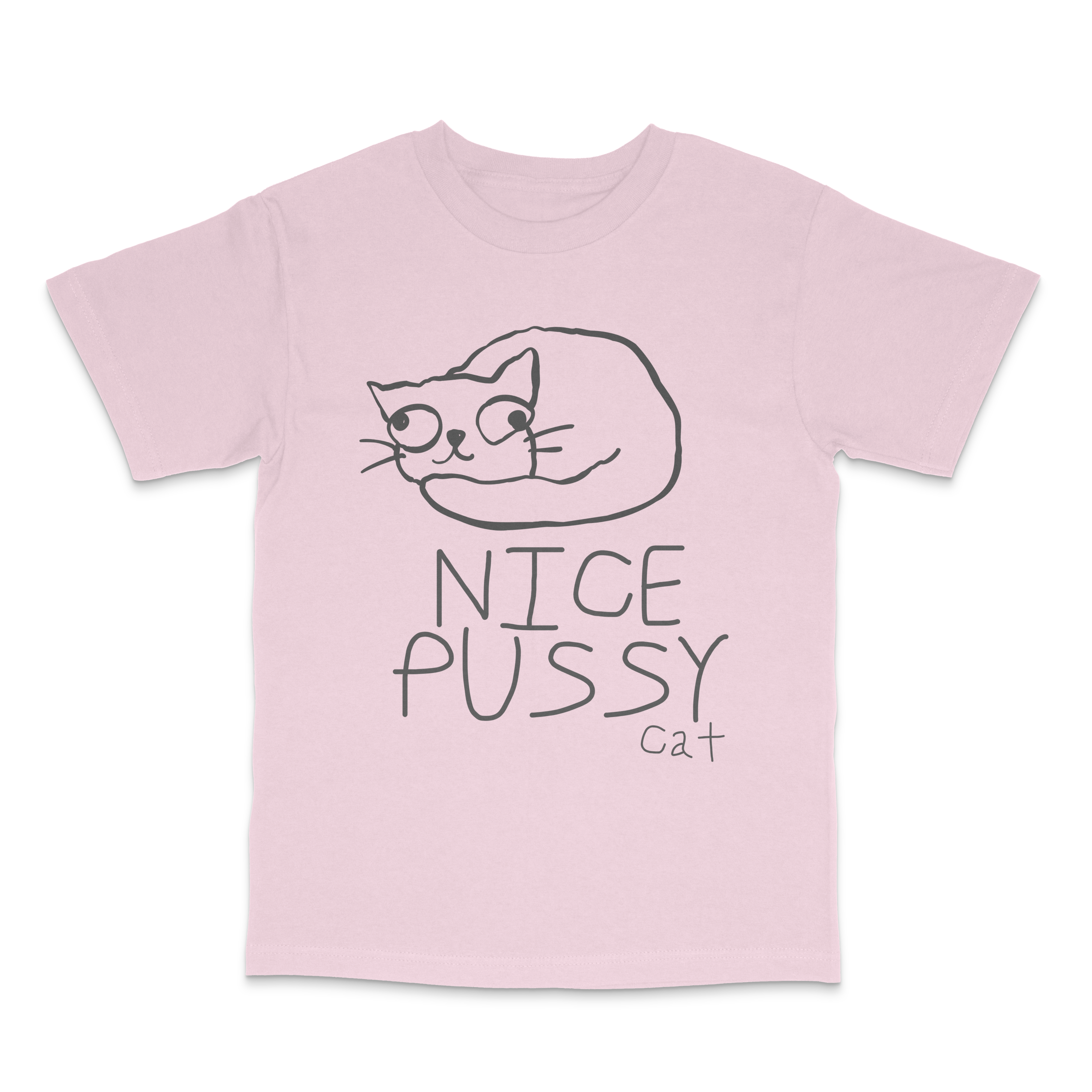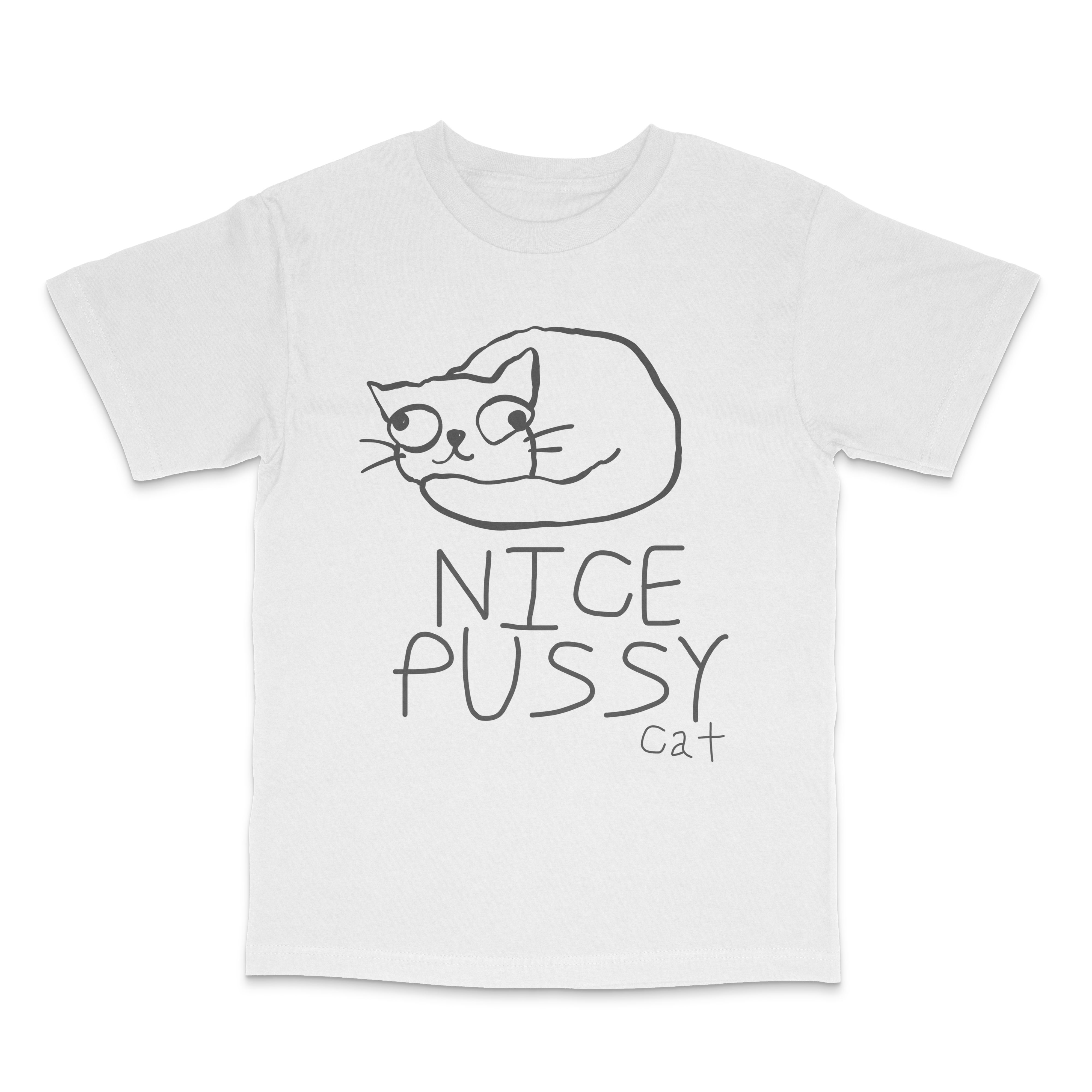 The Nice Pussy Cat Funny T-Shirt features a simple hand-drawn cat design with the hilarious phrase Nice Pussy Cat Kitty cat. At first glance it looks innocent. until people read it twice.
