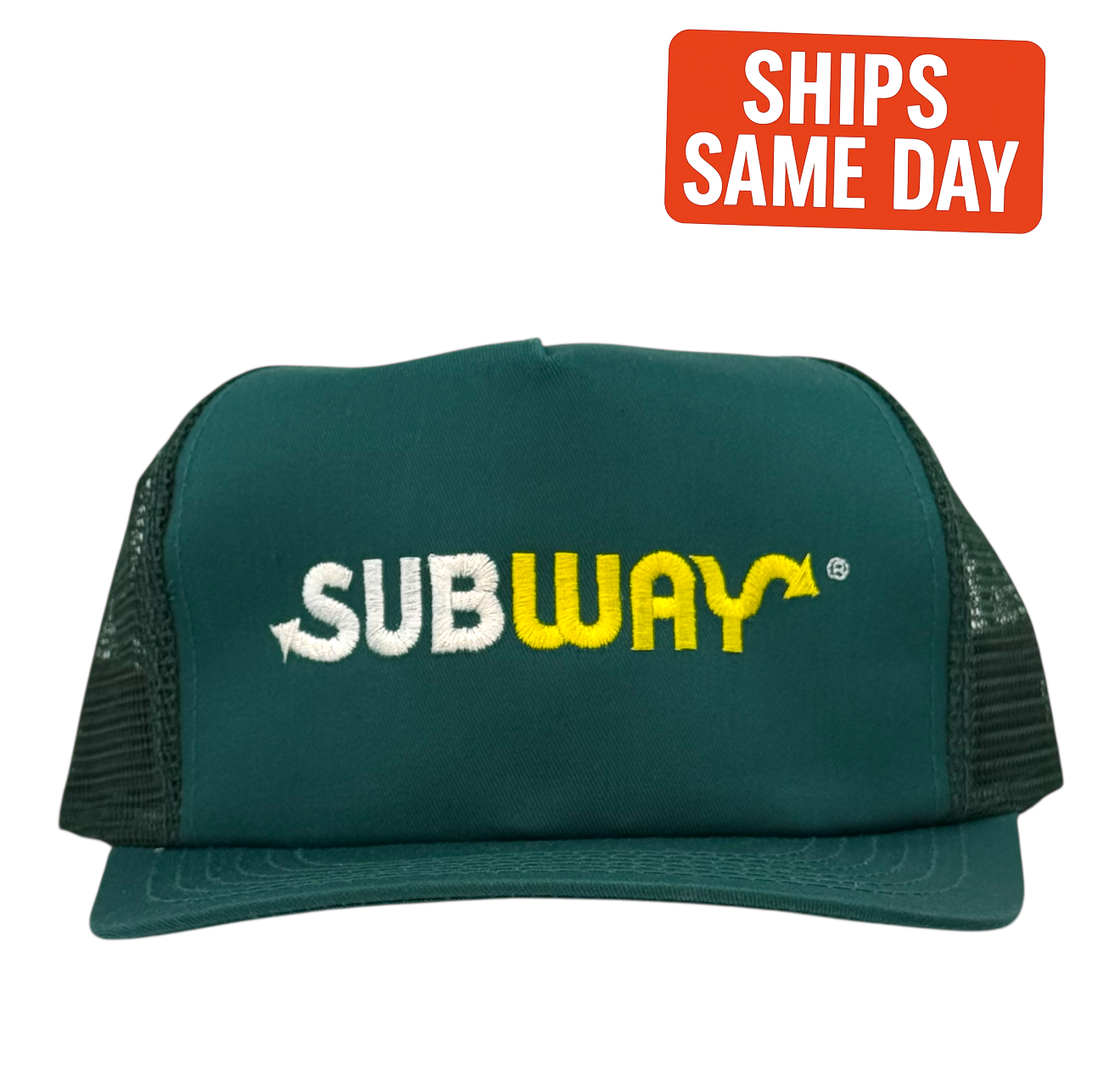 True Original Vintage Subway Green Mesh Trucker Hat Authentic 1990s Deadstock Employee Cap (Not Reproduced)